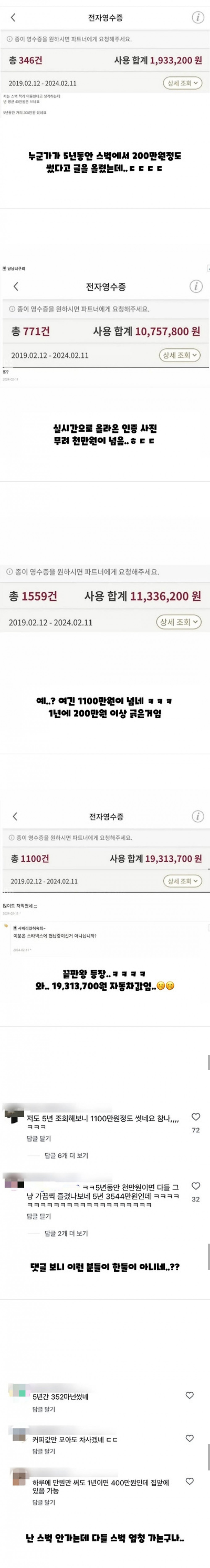 스벅 앱 들어가서 오른쪽 하단의 ... (Other) 누르고 전자영수증 기간설정 하고, 결제/전체로 확인가능함 드디어 부천BJ 단속 시작한 부천시가수 중에 진짜 미친 재능이라 생각하는 사람지금 역대급으로 추악하다는 테일러 스위프트 상술합격자와 불합격자의 차이선생에게 폭행당해 한쪽 청력을 잃어버렸다는 여배우