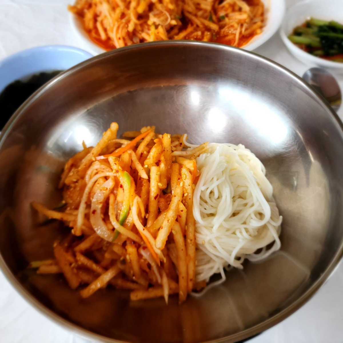 백종원의 유튜브 ‘님아 그 시장을 가오’에 소개된 오징어 물회 맛집 철원 ‘성환식당’. 원래는 감자옹심이, 만두 등 도 함께 판매했지만 현재는 오징어 물회만 판매하고 있다. 오징어 물회지만 처음에는 오징어무침 같은 비주얼로 등장해 먹다 보면 물이 생긴다고 ‘곧! 오징어 물회’라는 별명이 생겼다. 얇게 썬 오징어와 배, 무의 새콤달콤한 조합이 기가 막힌 오징어 물회는 물회만 먼저 먹고 밥과 물회를 넣어 비벼 회비빔밥처럼 먹다가 물이 생기면 국수를 넣어 먹는 방법으로 다양하게 즐길 수 있다.