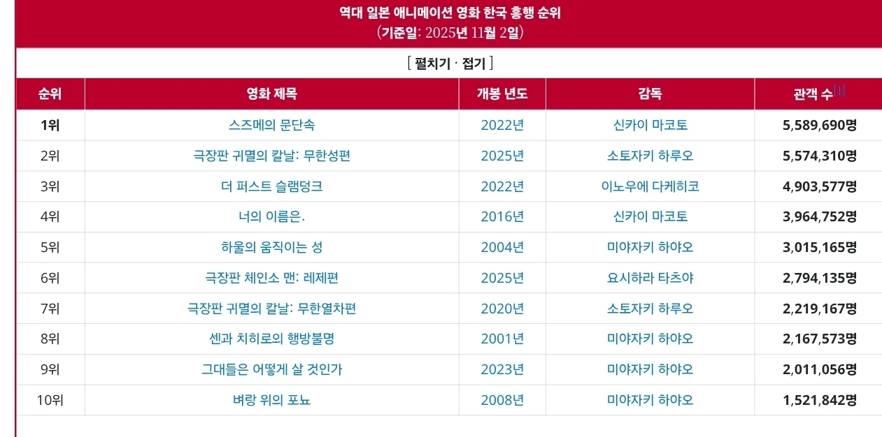 지난 주말동안 귀멸 관객 3만 5천, 체인소맨 12만 확보됨 귀멸 이번주에도 관 열려있고 체인소맨은 수능까지 상영 예정 역대 1위까지 1만 5천명 남음 벌써 역주행 시작한 그 노래레이EV랑 캐스퍼 일렉트릭 차체 비교유인영 피셜 라면 티어 정리여전히 아이디어 폭발하는 저가 코스프레 근황성시경, 오랜 매니저 배신으로 충격… 업무 금전 피해 발생