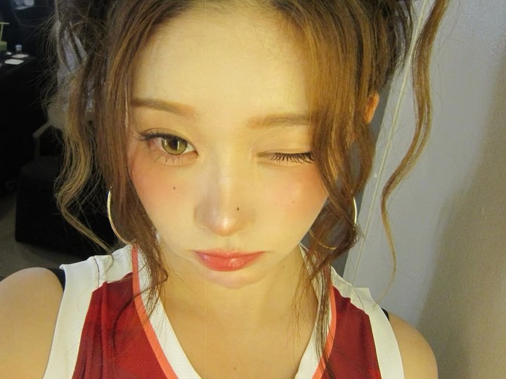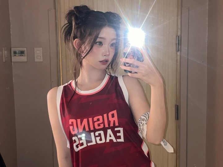 공개된 셀카에는 레드 농구 유니폼 스타일의 의상을 입은 츠키가 더블 번 헤어스타일을 연출해 상큼하면서도 카리스마 넘치는 분위기를 자아냈다.