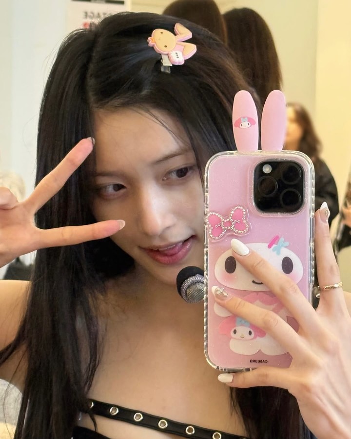 이밖에, 하얀 민소매에 리본 액세서리와 토끼 휴대폰 케이스를 매치해 소녀 같은 순수한 매력을 선보였으며, 무대 백스테이지에서는 블랙 스트랩 탑과 실버 주얼리로 시크한 스타일링까지 보여줘 다채로운 변신을 자랑했다.