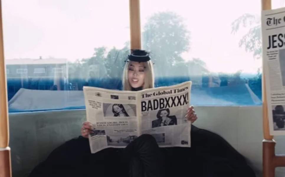 영상은 '제시 배드 비X'라고 적힌 1면 신문 기사를 읽는 제시의 모습으로 시작된다.