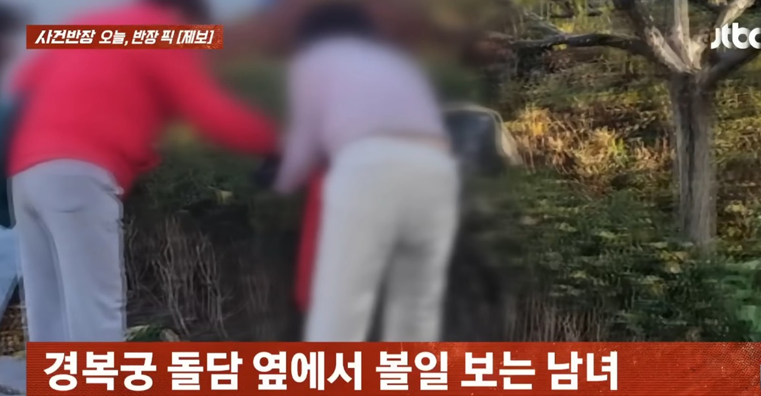지난 11일 JTBC ‘사건반장’ 보도에 따르면, 사건은 10일 낮 경복궁의 북문인 신무문 내 돌담 인근에서 발생했다. 제보자 A 씨가 촬영해 공개한 사진과 영상에는 한 중년 남성이 수풀 속에 쭈그려 앉아 휴지를 사용하며 용변을 보는 모습이 담겨 있다. 남성 옆에는 흰색 바지를 입은 여성이 같은 자세로 앉아 있었으며, 여성이 자리를 뜬 후에는 바지에 정체를 알 수 없는 얼룩이 남아 있었다.