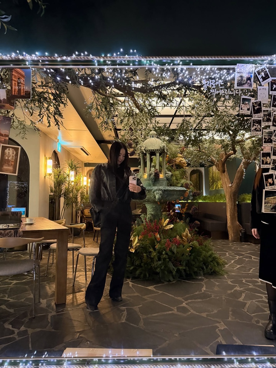 사진 속 김사랑은 감성적인 분위기가 돋보이는 카페를 찾은 모습으로, 거울을 활용해 전신 사진을 찍고 있는 모습이 담겼다. 특히 그는 가죽 재킷과 슬랙스 모두 올블랙으로 매치해 시크한 분위기를 완성했다. 무엇보다 미스코리아 대회 출신한 다운 늘씬한 몸매와 놀라운 비율이 감탄을 자아낸다.