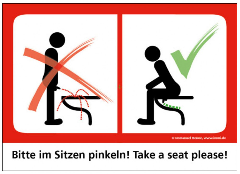 독일에는 앉아서 소변 보는 남자를 뜻하는 'Sitzpinkler'라는 말이 있을 정도로, 남성이 앉아서 소변 보는 문화가 널리 퍼져 있다. 실제로, 독일 남성은 세계에서 가장 높은 비율로 앉아서 소변을 본다.