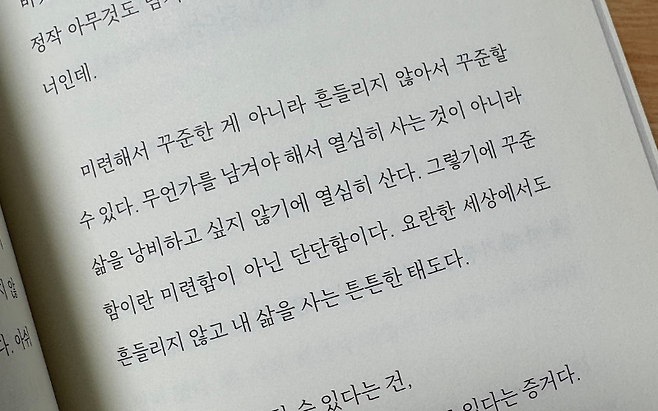 책 『어른의 행복은 조용하다』에서는 이렇게 말한다. “미련해서 꾸준한 게 아니라 흔들리지 않아서 꾸준할 수 있다.” 삶이 단단해지는 사람은 속도가 아니라 중심을 잃지 않는 사람이다. 50 이후 가장 우선적으로 갖춰야 할 힘이다.