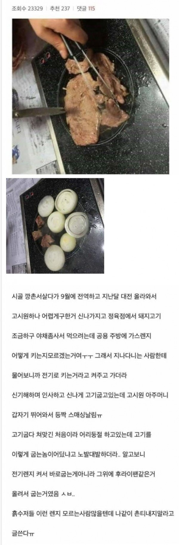 고기굽다 등짝스매시 맞은 디시인