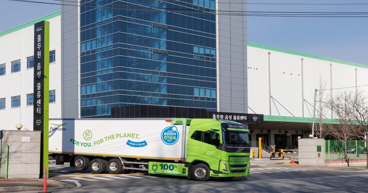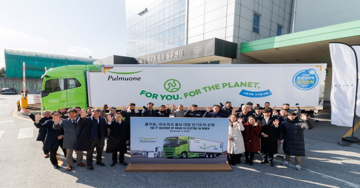 풀무원이 업계 최초로 물류 현장에 18톤급 대형 전기 트럭을 도입했다.