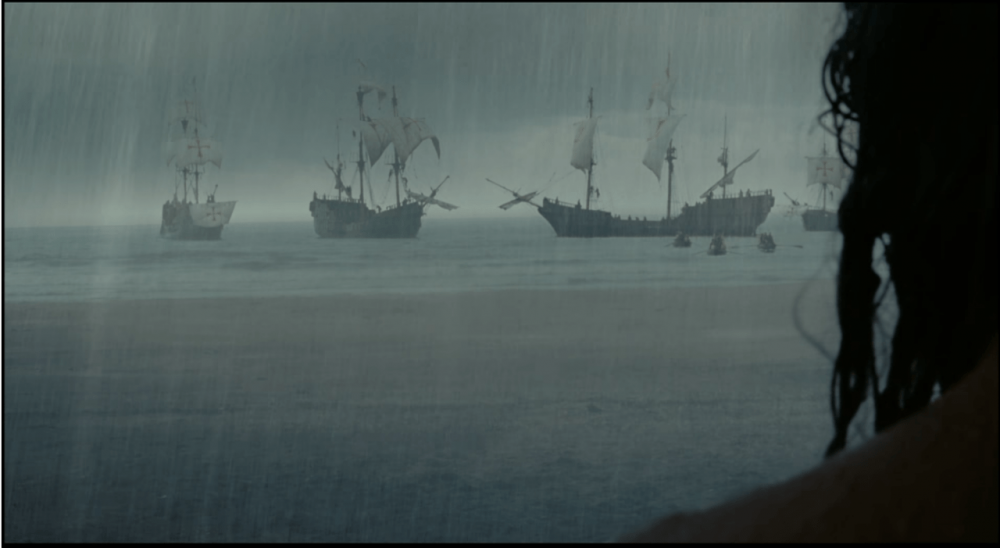 "큰 카누들이 도착했는데, 집처럼 생긴 것들이 바다를 건너 오고 있었다. 그것들의 흰 날개들이 펼쳐져 있었는데, 큰 새들처럼 보였다. 떠다니는 산들이었다."