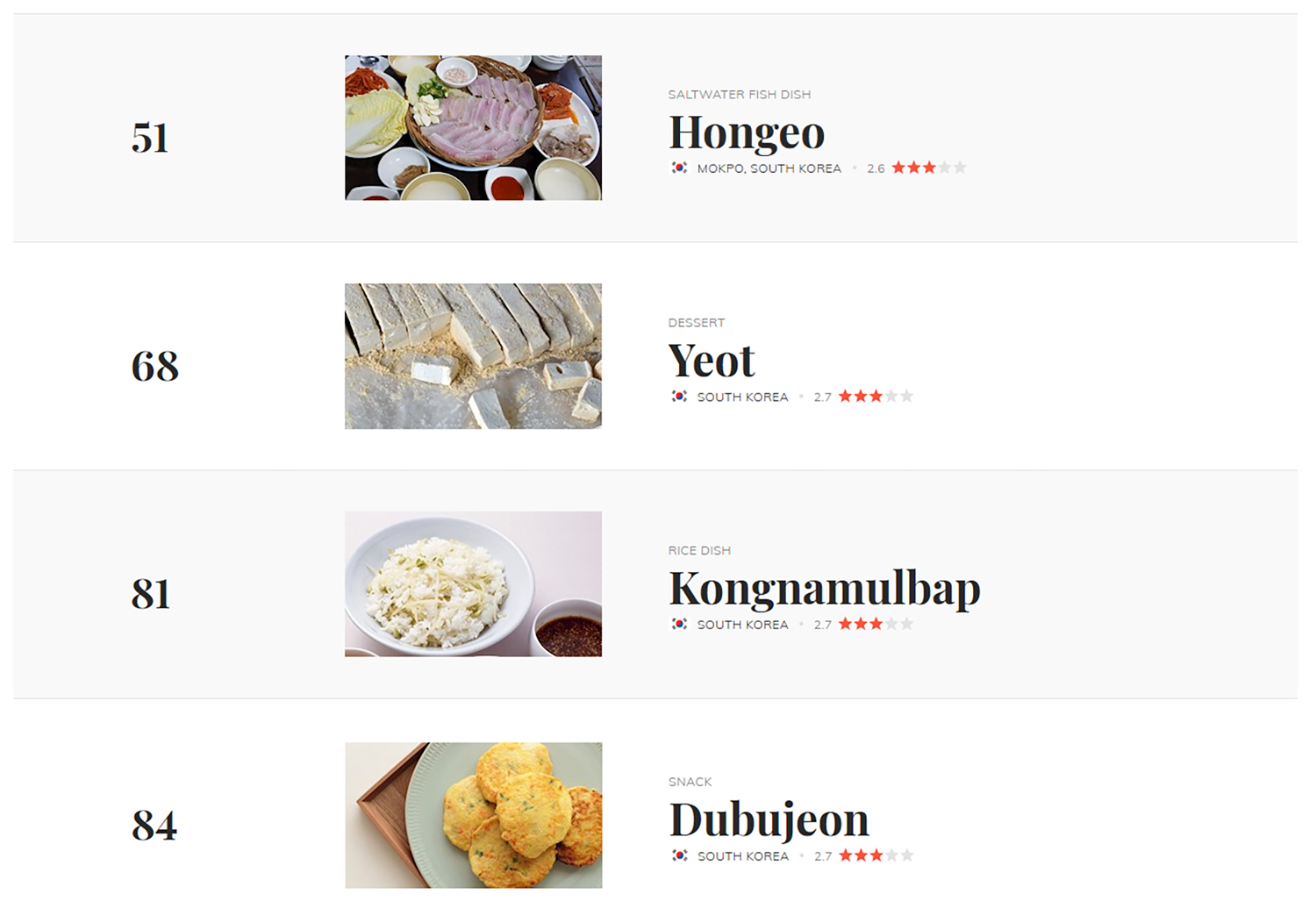 2025년 세계 최악의 음식에 선정된 4개의 한국 음식들 정체