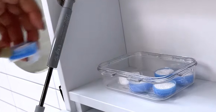 욕실에서 청소를 하려면 보통 다용도실에 있는 세제 통을 꺼내와야 하는데, 무게가 있고 공간도 차지해 번거롭다. 작은 뚜껑 소분 방식은 욕실 선반이나 세면대 아래에도 부담 없이 두기 좋아 청소 도구를 더 효율적으로 정리할 수 있다. 특히 소규모 욕실에서는 대용량 용기를 가져오는 과정 자체가 불편해 소분된 세제가 훨씬 실용적이다. 동선이 짧아지면 청소 시간이 줄고, 청소를 자주 하는 습관도 자연스럽게 유지된다.