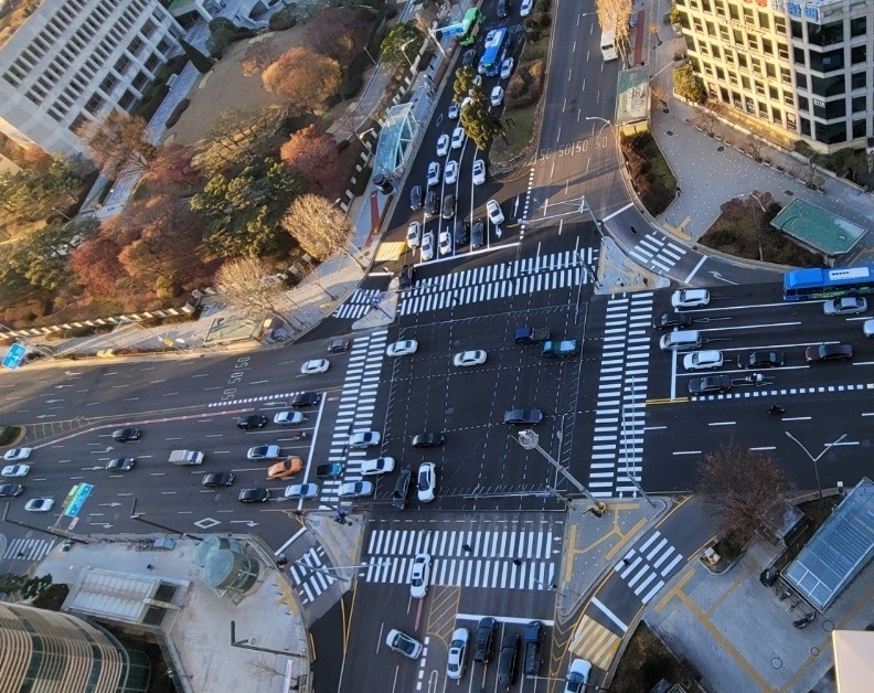 이날 개통한 횡단보도는 사거리 네 방향을 모두 연결하는 □자형 구조다. 기존에는 북쪽과 서쪽 방향으로만 건널 수 있었고, 남쪽과 동쪽으로 이동하려면 지하 통로를 이용해야 했다.