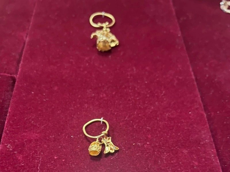 출토 된 금제 유물의 종류는 귀걸이, 실에 꿰어 다는