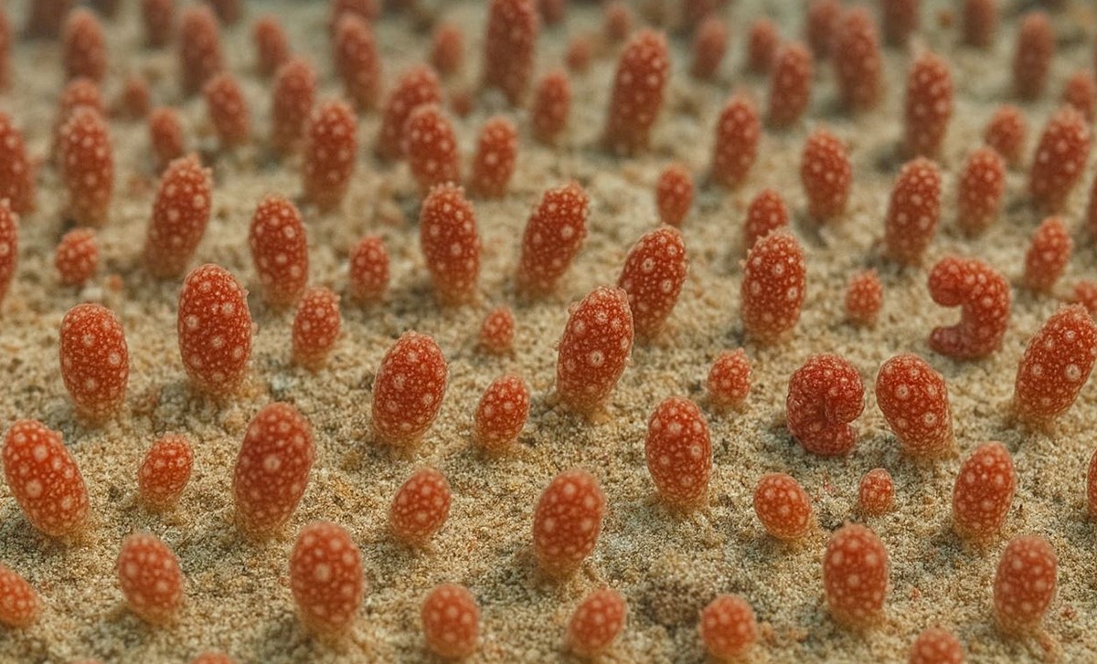 홍해삼이 대량으로 바다에 방류됐다.