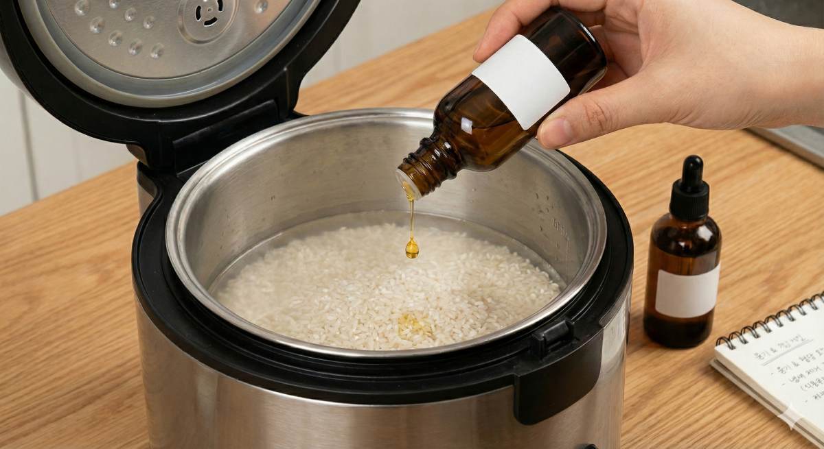 가장 간단하면서도 효과가 검증된 방법은 식초 활용이다. 쌀을 평소처럼 씻은 뒤 밥물 3~4인분 기준 식초 5mL, 즉 밥숟가락 한 스푼 정도를 넣고 밥을 짓는다. 식초의 주성분인 초산은 쌀의 전분 구조에 작용해 젤라틴화 온도를 낮춘다. 전분이 더 빠르고 고르게 팽윤하며 밥의 점성이 증가한다. 동시에 약산성 환경이 박테리아와 곰팡이 억제를 돕는다.