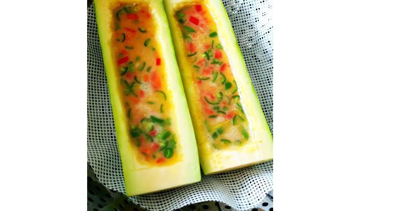 먼저 애호박을 반으로 자른다. 길게 반을 가른 뒤, 숟가락이나 전용 스푼을 이용해 가운데 속을 파낸다. 이때 너무 얇게 파내면 계란물이 흘러넘칠 수 있으니 적당한 두께를 유지하는 것이 중요하다. 속을 파낸 애호박은 찜기에 담기 좋도록 바닥이 평평하게 되도록 정리한다. 이렇게 준비된 애호박은 채워 넣을 계란물이 들어갈 ‘그릇’ 역할을 한다.