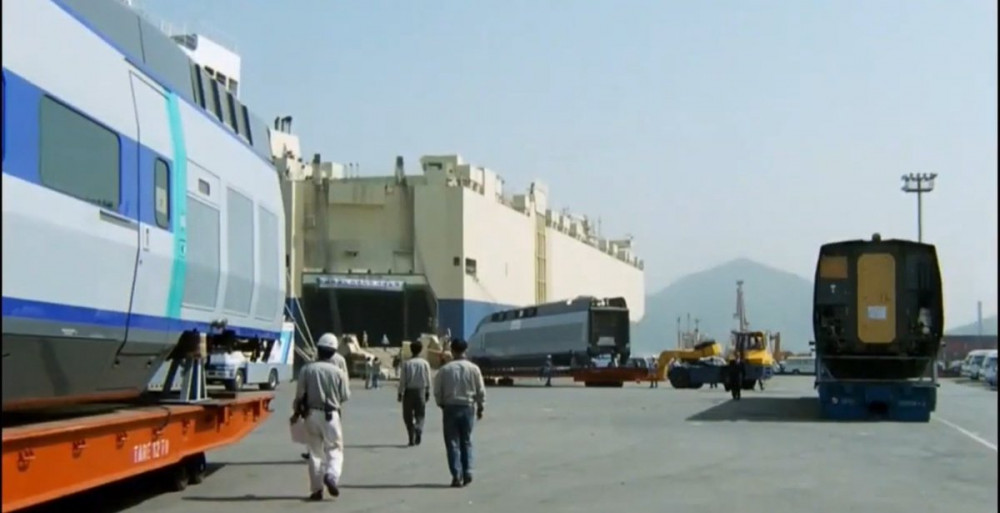 1998년 마산항 경부고속철도 고속열차로 선정된 프랑스 알스톰제 TGV 기반 KTX-I이 마산항을 통해 수입되는 모습 2025년 마산항 현대로템제 EMU-250(KTX-이음) 기반 아프로시욥 2세대 차량이 마산항에서 우즈베키스탄으로 출항을 기다리는 모습 자체 기술이 없어 수입하던 나라에서 27년이 지나 이제는 고속철도를 수출하는 나라가 된 대한민국은 어디를 향해 나아가고 있는가? 왕관 모양 병뚜껑의 비밀민원폭탄 김해중부 경찰서 근황베트남 공안에게 체포되는 한국인들정신과 의사가 말하는 우울증 치료제 1티어8시 59분에 도착하는 직원