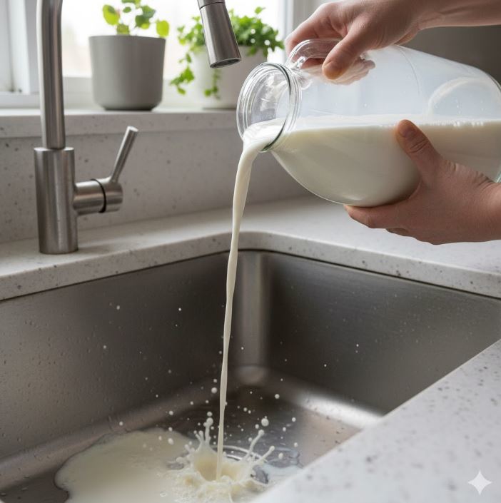 우유는 왜 특별히 문제가 될까 우유는 지방과 단백질이 풍부해 배수관에 들어가면 온도가 떨어지는 순간 응고한다. 이 과정에서 배관벽에 덩어리 형태로 붙어 고무처럼 굳어지며, 특히 기름때와 만나면 비누화 현상이 일어나 더 단단한 막을 형성한다. 이렇게 굳은 부산물은 물로도 잘 씻기지 않아 배관을 좁게 만들고 악취의 발원지가 된다. 냄새는 배수구에서 올라와 주방 전체에 퍼지기 때문에 생활 불편도 커진다. 남은 우유를 싱크대에 버리면 안 되는 이유가 여기에 있다.