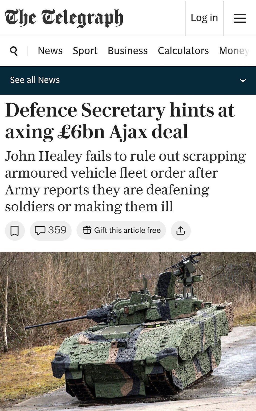 영국이 1971년에 도입한 CVR(T) 장갑차들을 대체하기 위해 2014년부터 시작한 ajax 정찰 장갑차 프로젝트 BBC에 따르면 이 프로젝트에 63억 파운드 썼다고 하는데 최근 영국 언론들이 이 프로젝트 대차게 까기 시작