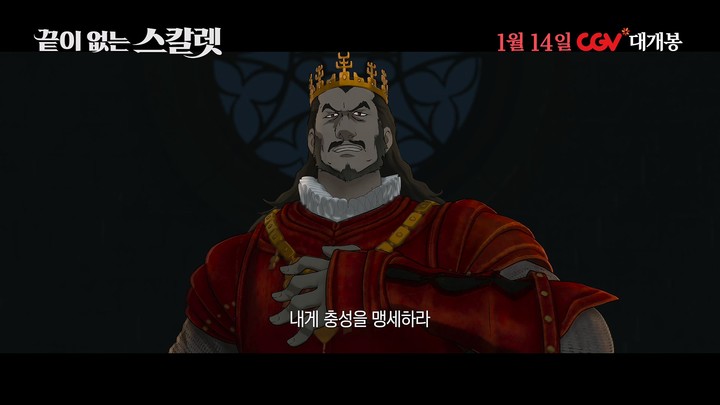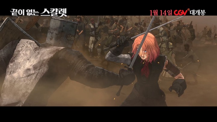 아시다 마나(스칼렛), 오카다 마사키(히지리), 야쿠쇼 코지(클로디어스) 등 일본 대표 배우들이 목소리 출연을 맡아 몰입감을 높인다. 한층 확장된 스케일과 강렬한 영상미로 기대를 모으는 ‘끝이 없는 스칼렛’은 2026년 1월 14일 CGV에서 공개될 예정이다.