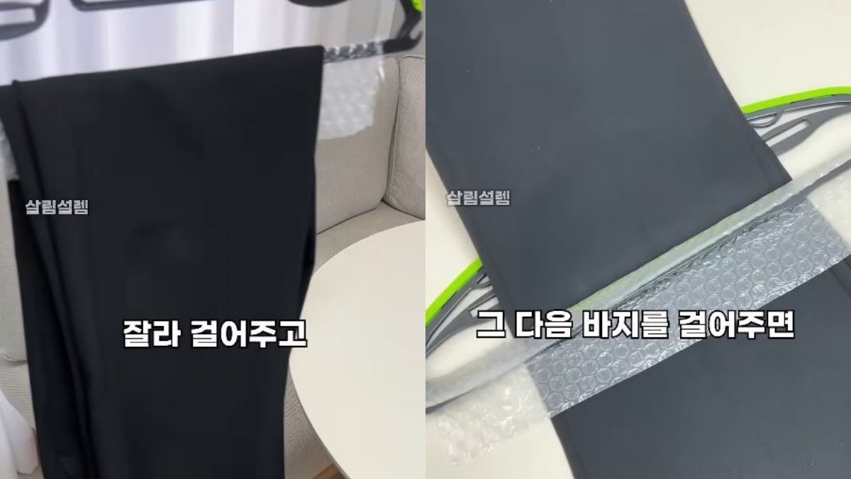 가장 눈길을 끈 활용법은 뽁뽁이를 옷걸이에 활용하는 방법이다. 바지를 옷걸이에 걸어 보관할 경우, 접히는 부분에 자국이 남아 깔끔한 관리가 어려운 경우가 많다. 이럴 때 뽁뽁이를 옷걸이 길이에 맞게 잘라 감싼 뒤 그 위에 바지를 걸어두면 압력을 분산시켜 자국이 생기는 것을 효과적으로 막을 수 있다. 별도의 비용이나 도구 없이도 옷을 보다 깔끔하게 관리할 수 있어 실용성이 높다는 평가다.