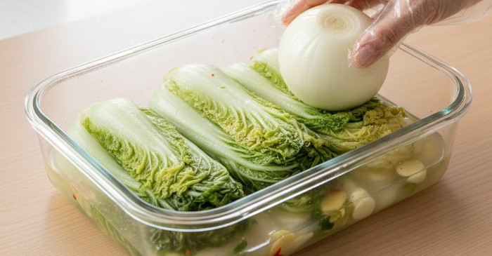 양파가 좋은 이유는 맛 때문만이 아니다. 양파에는 퀘르세틴 같은 항산화 성분이 들어 있어 발효 과정에서 유산균 활동을 돕는다. 특히 백김치는 양념이 많지 않아 재료의 자연스러운 힘이 발효에 직접 영향을 준다. 양파는 국물 맛을 부드럽게 하고 짠맛을 눌러주는 역할도 한다. 소금 농도가 강하지 않게 잡히기 때문에 백김치 특유의 깨끗한 맛을 더 오래 유지할 수 있다. 자연 효소가 발효를 정리해 주기 때문에 첫맛은 산뜻하고 뒷맛은 부드럽다.