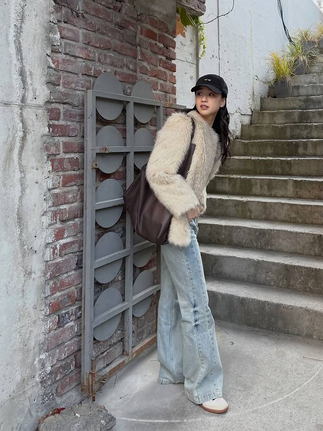 캐주얼한 데님 팬츠나 풍성한 퍼 재킷 같은 의상에도 웨이브가 주는 여성스러운 무드가 더해져서, 전체적으로 사랑스럽고 따뜻한 느낌을 완성했답니다.