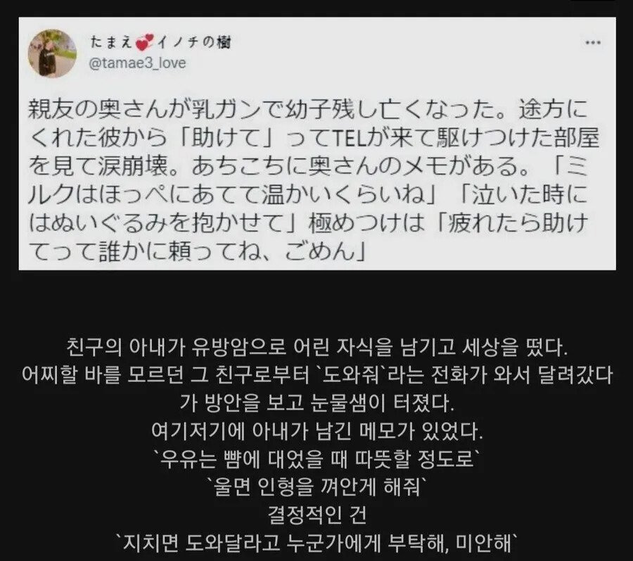 유방암으로 아내를 떠나보낸 친구가 보내온 문자