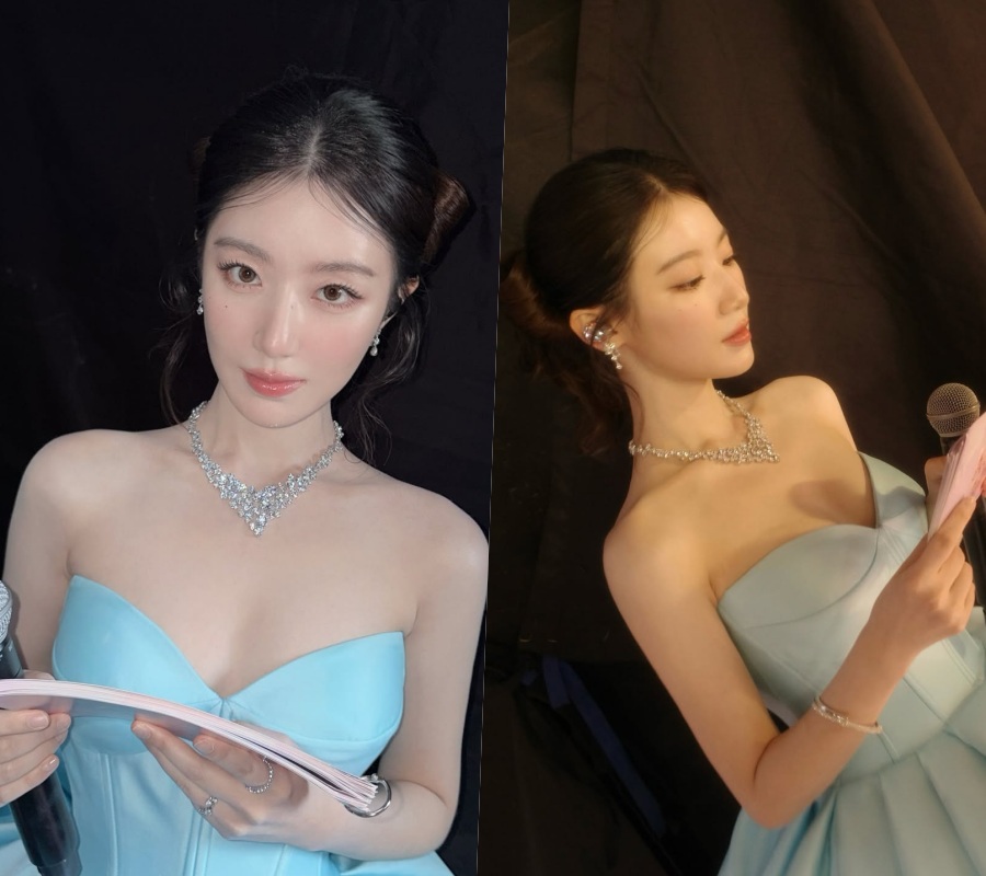 공개된 사진 속 슈화는 어깨 라인이 드러나는 코르셋 실루엣의 블루 드레스를 선택했다. 과하지 않은 주얼리와 깔끔하게 올린 헤어가 드레스의 색감을 또렷하게 살리며, 손을 모아 포즈를 취하거나 양 볼에 미소를 얹은 순간마다 공주님 모먼트로 아름다움에 감탄을 더한다.