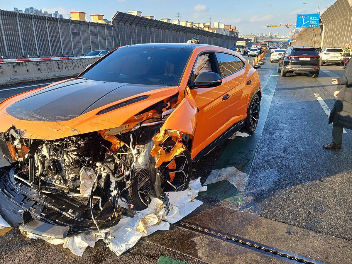 이 사고로 람보르기니 탑승자 2명 중 1명이 경상을 입었다. 또 람보르기니와 포르쉐 차량에서 기름이 유출되면서 왕복 4차로 가운데 2개 차로의 통행이 통제되고 있다.
