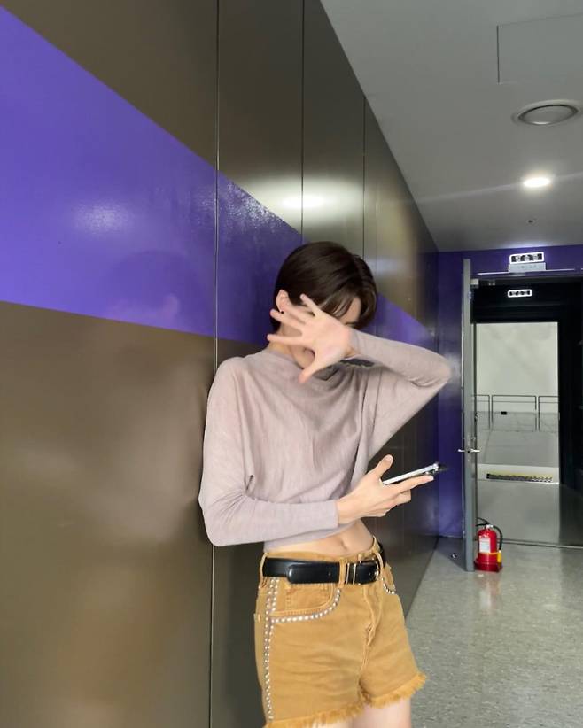 전체적인 의상도 짧은 하의와 크롭 상의를 매치해 힙하고 트렌디한 느낌을 주었어요.