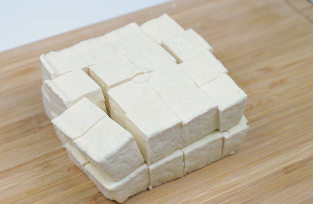 가장 중요한 첫 단계는 두부 선택이다. 부침용이나 단단한 두부가 적합하다. 연두부나 찌개용 두부는 물기가 너무 많아 작은 크기로 썰었을 때 형태를 유지하기 어렵다. 두부를 꺼낸 뒤에는 키친타월로 감싸고 손바닥으로 살짝 눌러 겉물기만 제거한다. 무게를 실어 오래 눌러둘 필요는 없다. 과도하게 물을 빼면 오히려 퍽퍽해진다.
