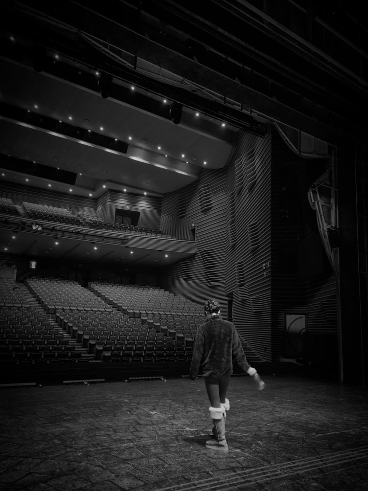 15일 공개된 사진에서 민경아는 관객 없이 텅 빈 객석을 마주한 채 무대 중앙을 여유롭게 걷고 있다. 사진은 흑백 필터로 담겨 공연장의 넓은 공간이 고스란히 드러난 가운데, 포근한 퍼 부츠와 질감이 살아있는 아우터가 조화를 이루며 민경아의 존재감을 한껏 부각시킨다.