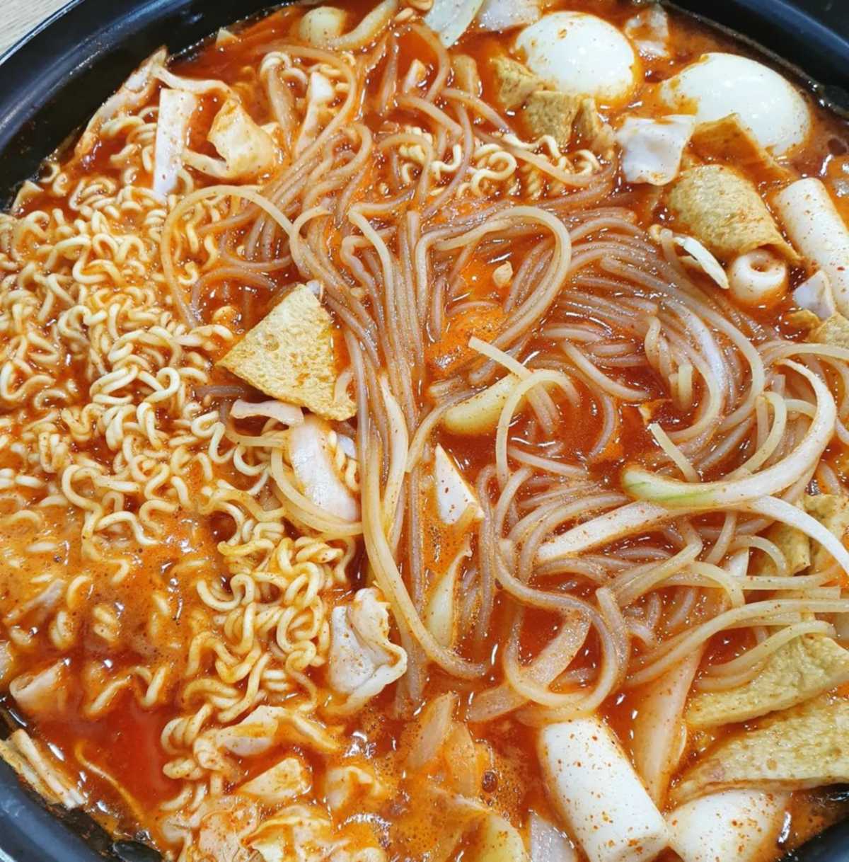 서울 중랑구에 자리한 ‘옛날헐머니분식’은 신당동 스타일 즉석떡볶이를 저렴한 가격에 즐길 수 있는 곳이다. 50년 넘게 같은 자리를 지켜온 노포로, 80대 할머니가 직접 운영하며 포차 감성이 물씬 느껴지는 거리를 대표하는 분식집이다. 밀떡, 양배추, 파, 어묵, 라면, 쫄면, 야끼만두 등 다양한 재료가 아낌없이 들어가 가장 작은 사이즈도 2명이 넉넉히 먹을 수 있을 정도로 푸짐하다. 소스는 과하지 않은 매운맛에 은근한 단맛이 어우러져 밀떡과 조화롭게 어울린다.
