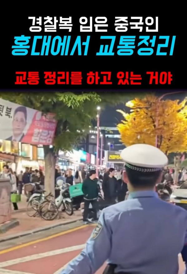 홍대 한복판에서 짱깨가 공안복 입고 교통정리