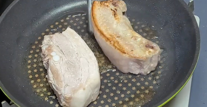 밑간은 최소한으로 한다. 소금과 후추만으로도 충분하다. 프라이팬을 센 불로 달군 뒤 기름을 두르지 않고 삼겹살을 올린다. 삼겹살 자체에서 지방이 나오기 때문에 추가 기름은 필요 없다. 겉면이 노릇하게 익을 때까지 한 면씩 굽는 것이 첫 단계다. 이 과정에서 고기의 겉은 단단해지고, 안쪽 육즙은 빠져나가지 않게 잡힌다.