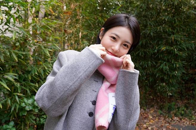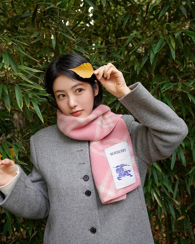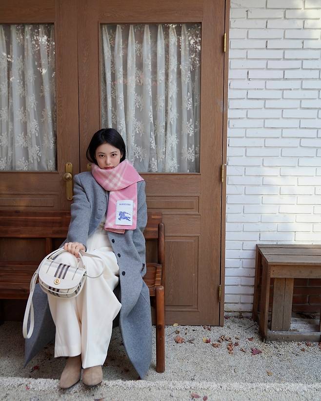 이 컬러는 신예은 씨의 투명한 피부 톤을 더욱 돋보이게 하며, 단정한 셋업이나 화사한 핑크 배경과도 조화롭게 어우러져 세련된 느낌을 더해주었습니다.