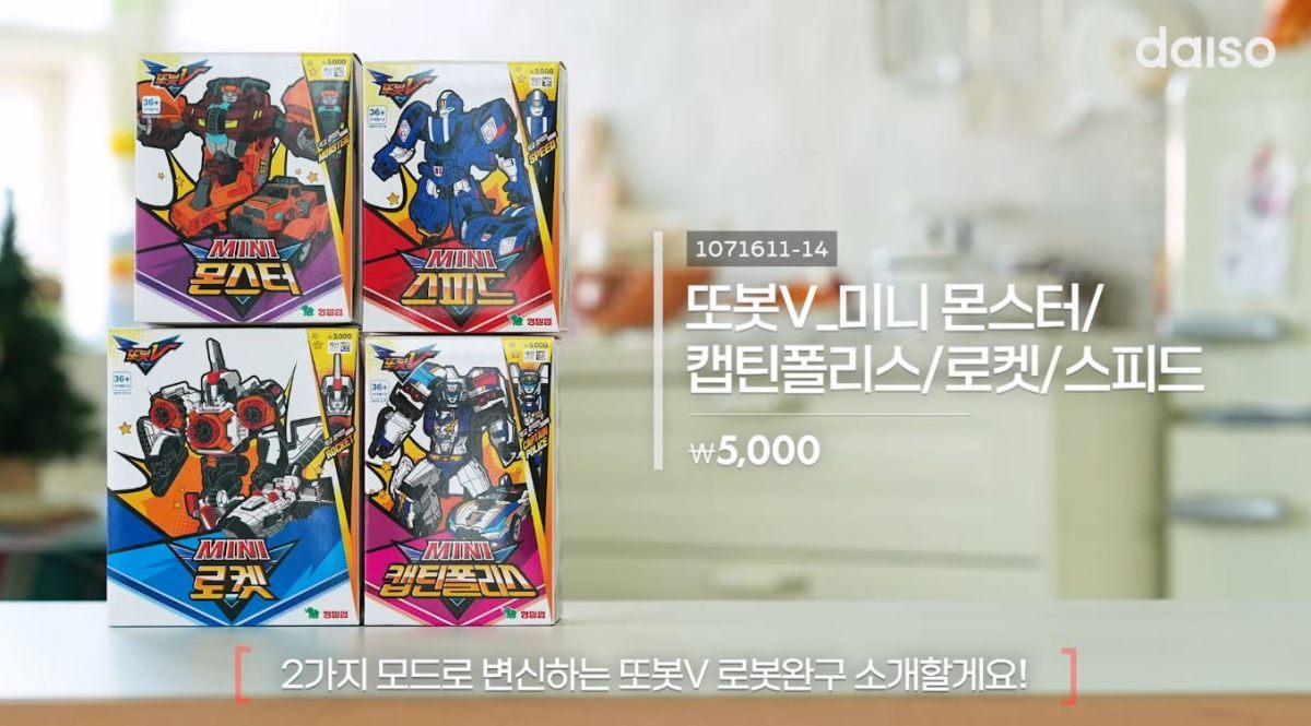 완구 코너에는 두 가지 모드로 변신하는 또봇 V 로봇 완구가 새롭게 입고됐다. 동봉된 설명서를 따라 조립하면 로봇에서 자동차로 변신이 가능하다. 몬스터, 캡틴 폴리스, 로켓, 스피드 등 네 종류로 출시됐다.