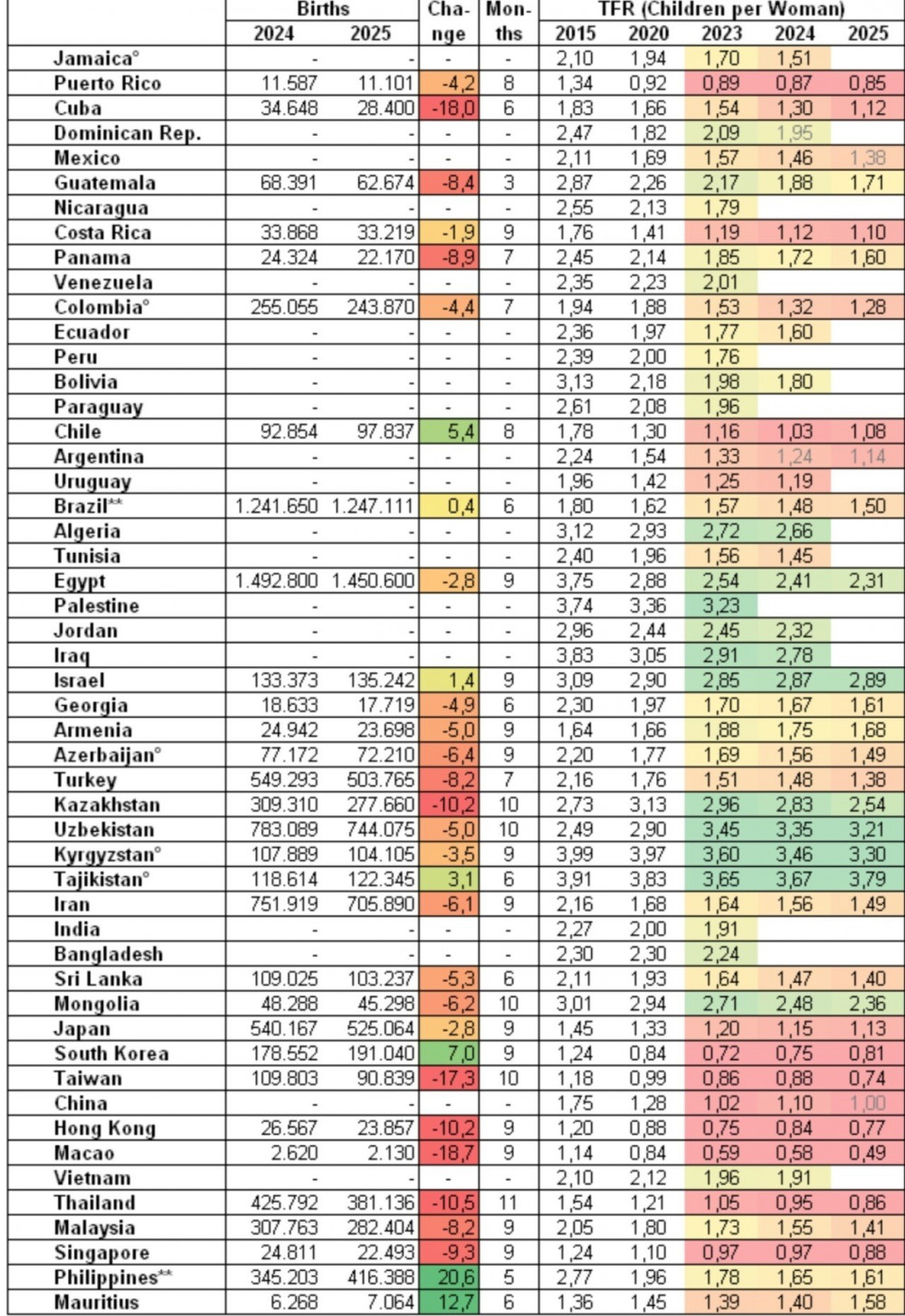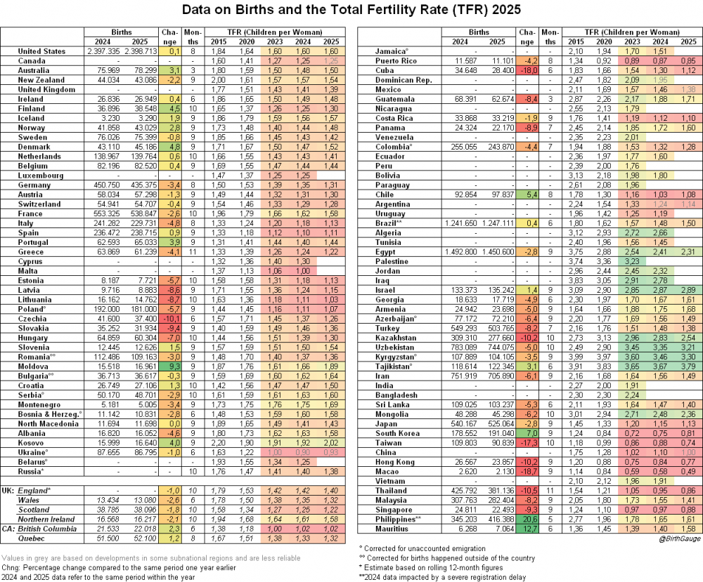주요국 잠정 출산율(2025)타지키스탄 3.79키르기스스탄 3.30우즈베키스탄 3.21이스라엘 2.89카자흐스탄 2.54몽골 2.36이집트 2.31코소보 2.02몰도바 1.89필리핀 1.61미국 1.60파나마 1.60프랑스 1.58호주 1.50브라질 1.50이란 1.49포르투갈 1.44네덜란드 1.41말레이시아 1.41영국 1.39러시아 1.38멕시코 1.38튀르키예 1.38독일 1.31캐나다 1.25그리스 1.22아르헨티나 1.14이탈리아 1.13일본 1.13스페인 1.11칠레 1.08폴란드 1.07중국 1.00우크라이나 0.93싱가포르 0.88태국 0.86푸에르코리코 0.85대한민국 0.81홍콩 0.77대만 0.74마카오 0.49 LCK와 다른 LPL 2025 롤드컵 클로징멘트현직 의사가 생각하는 주사이모를 쓰는 이유노르웨이 청년이 말해주는 노르웨이 '쉬었음' 청년 상황100억이 넘는 아파트에도 생기는 주차분쟁호불호 갈린다는 제육볶음 취향