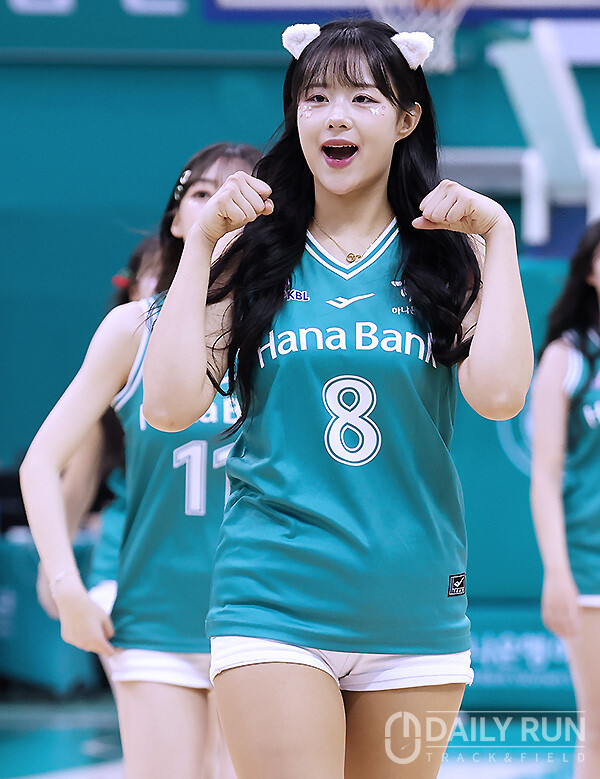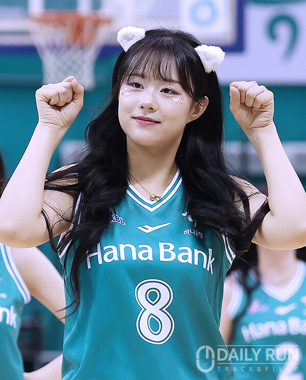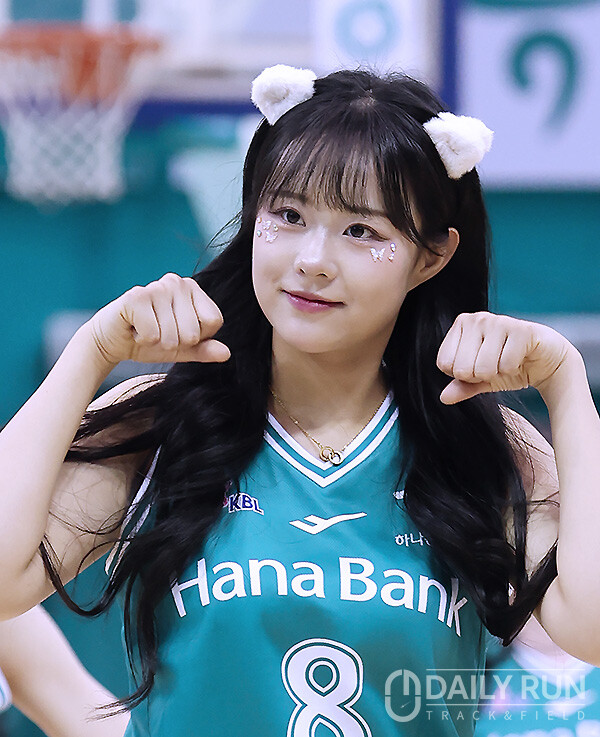 20일 오후 부천체육관에서 열린 'BNK금융 2025~2026 여자프로농구' 부천 하나은행과 청주 KB스타즈의 경기종료 후 코트를 빠져나오던 부천 치어리더 이호은이 귀여운 고양이 포즈를 취하며 깜찍함을 더하고 있다.