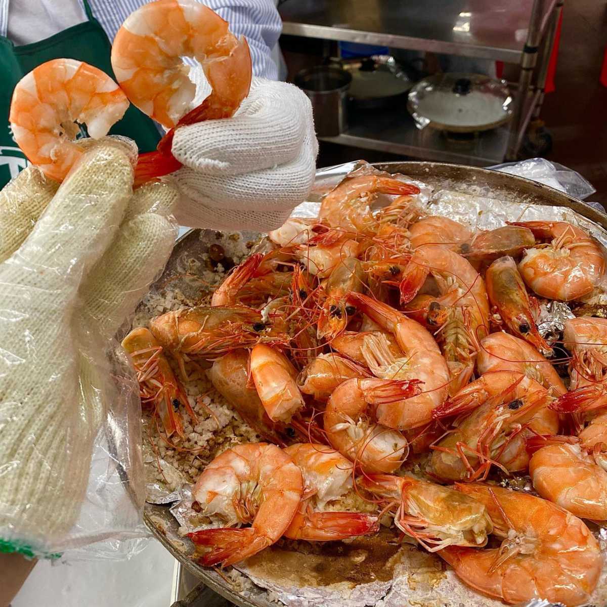 왕새우 소금구이 (1kg) 48,000원, 새우라면 5,000원