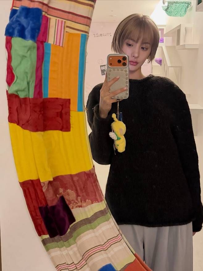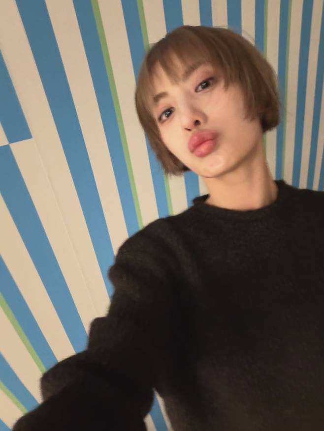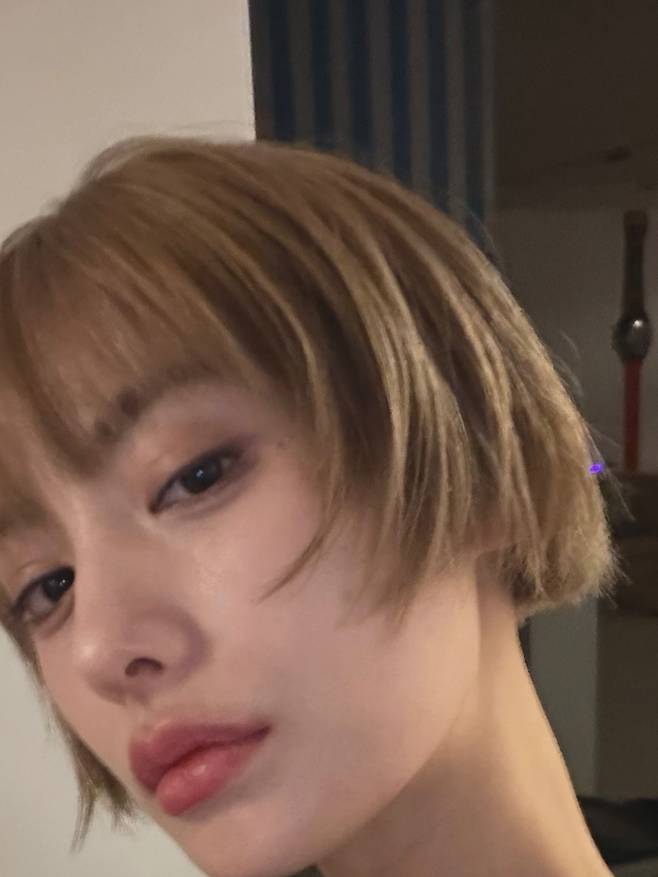 나나 님의 이번 스타일은 턱선 근처에서 깔끔하게 떨어지는 짧은 머리 기장이 주는 시크함이 핵심이에요