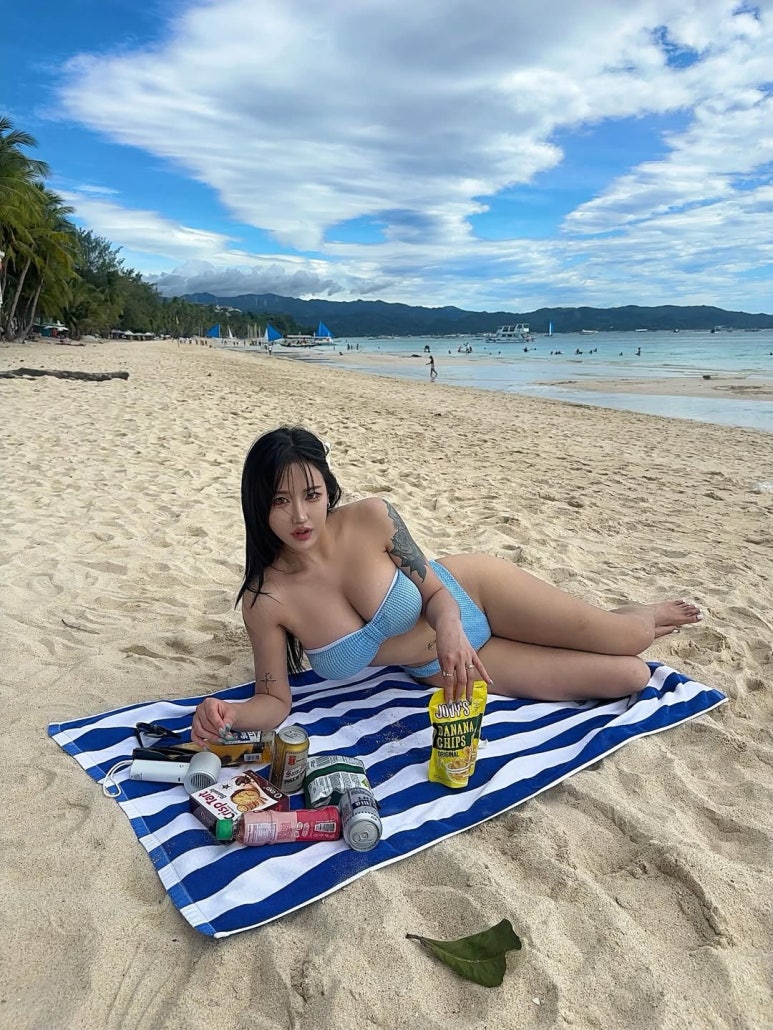 인플루언서 @cherish.__h의 반전 비키니 스타일링 분석.