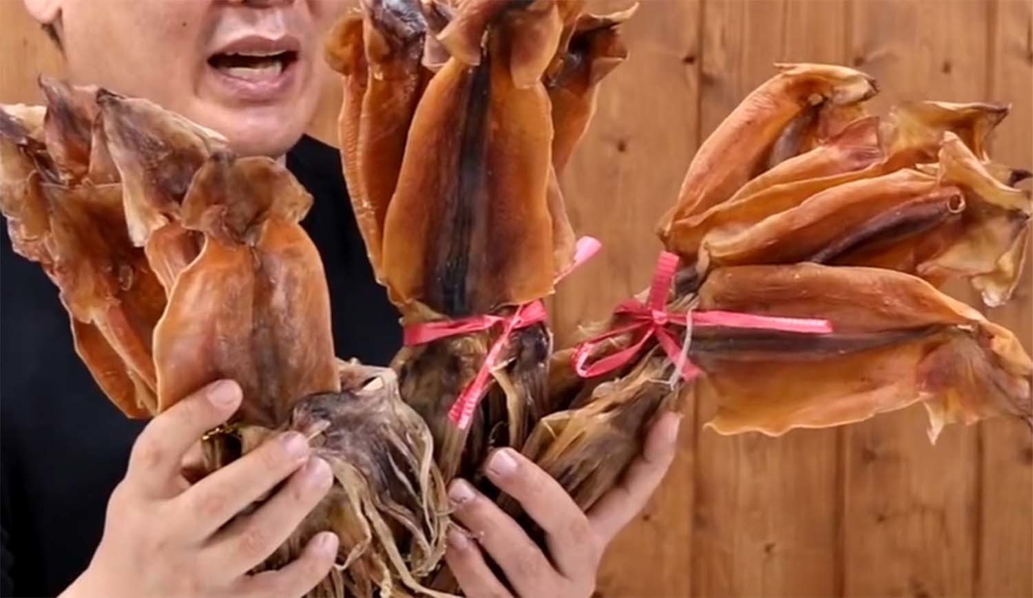 그 다음엔 죽은 선어로 만든 배오징어를 시식했다. 울릉도산 배오징어처럼 잘 찢어졌다. 유튜버는 박수를 쳤다. 그만큼 맛에 감탄했다는 뜻이다.