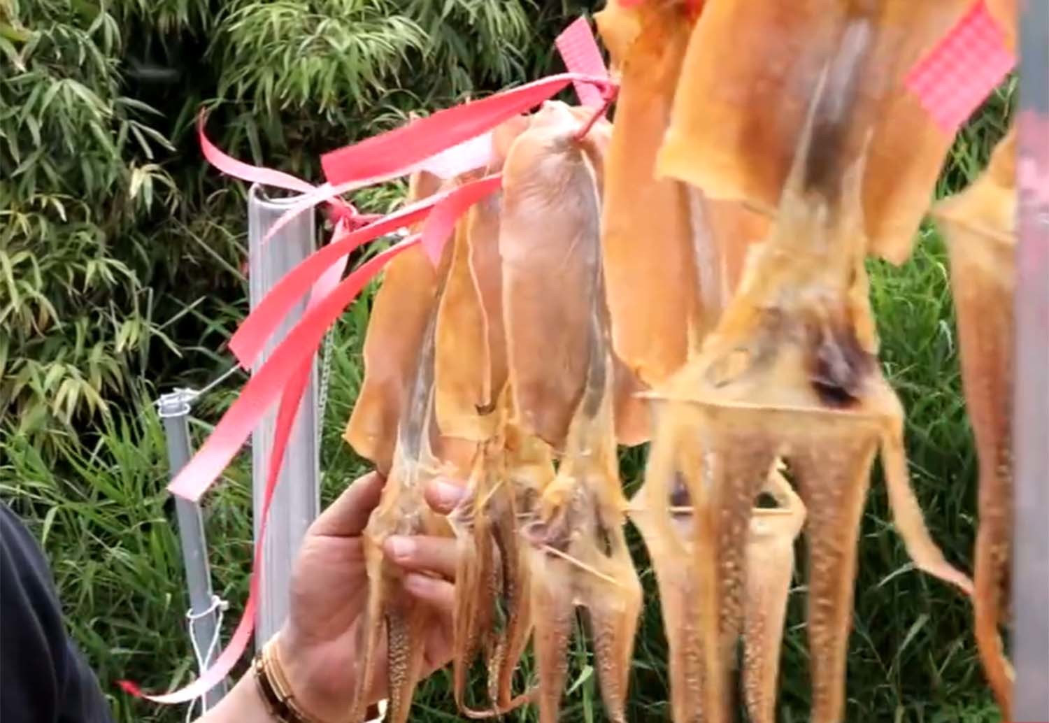 유튜버는 생물 오징어를 건조망에 펴서 말린 오징어에 대해서는 별다른 반응 없이 고개를 끄덕였다.