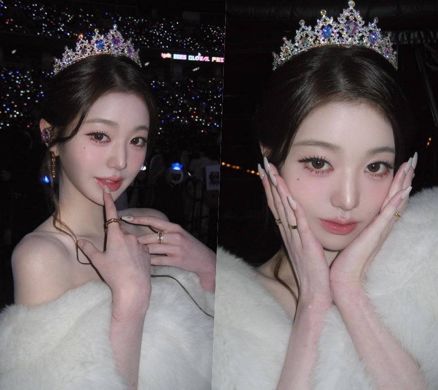 공개된 사진 속 장원영은 화이트 오프숄더 드레스에 퍼 디테일을 더한 스타일링으로 등장한다. 보석이 촘촘히 세팅된 티아라와 은은한 메이크업, 또렷한 눈매가 조명을 대신한다. 손끝을 입술에 대거나 얼굴을 감싼 포즈에서는 사랑스러움과 여유가 동시에 읽힌다.