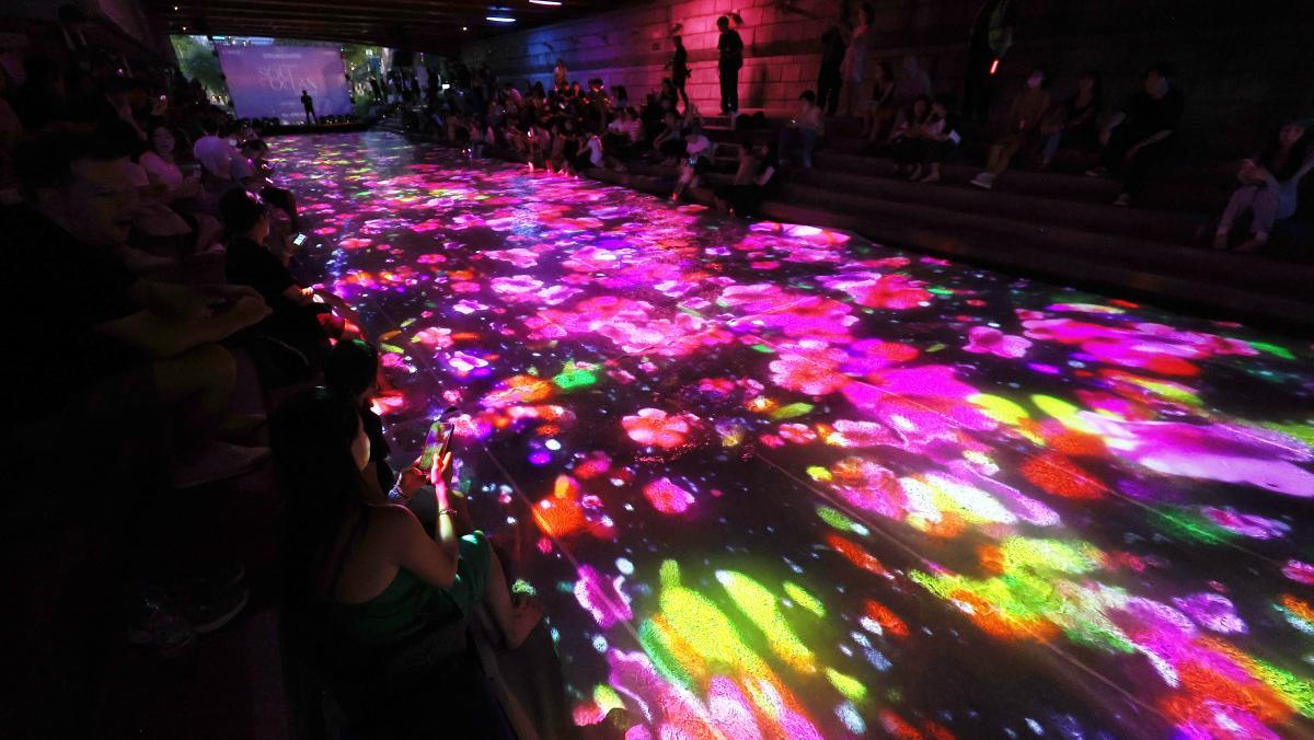 서울 청계천 광교 아래에서 진행되고 있는 야간 미디어 아트 전시인 '청계 소울 오션'이 다음 달 11일까지 연장 운영한다.