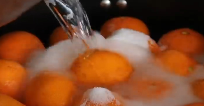 냄비에 물을 넉넉히 붓고 물이 완전히 끓기 시작하면 준비한 귤을 통째로 넣는다. 불은 중불로 유지하고 10분 정도 끓인다. 이 과정에서 귤 껍질 속 쓴맛 성분이 빠져나오고, 과육은 부드러워진다. 끓인 귤은 건져내 찬물에 한 번 헹군 뒤 식힌다. 물을 갈아 한 번 더 끓이는 방법도 있지만, 이쑤시개로 찌른 귤은 한 번의 끓임만으로도 쓴맛이 크게 줄어든다.