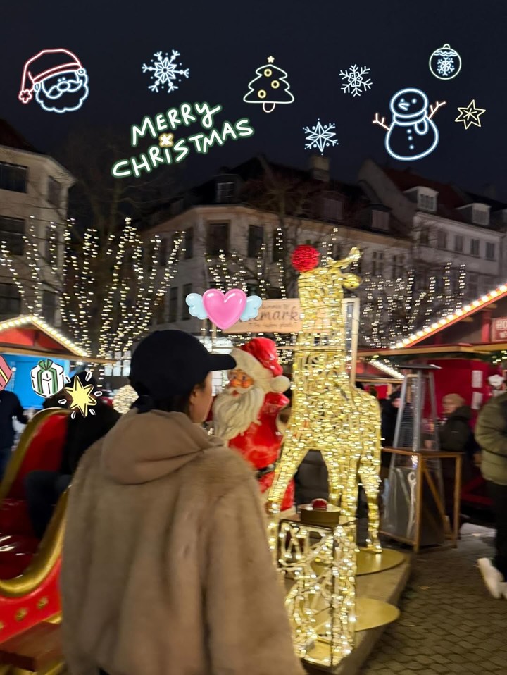 한편, 야외에서 촬영된 사진에서는 크리스마스 마켓으로 보이는 배경과 반짝이는 조명으로 연말 특유의 감성이 담겼다.