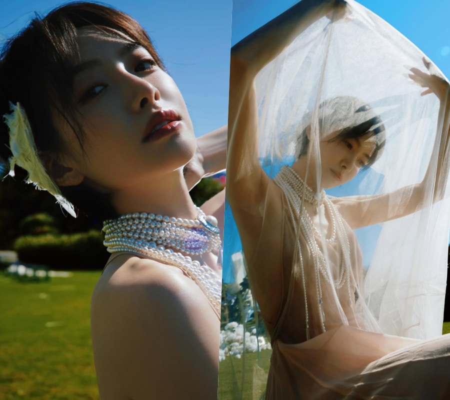 공개된 사진 속 빅토리아는 누드 톤의 시스루 드레스를 입고 나무 사이에 서 있다. 진주 초커와 레이어드 네크리스, 헤어에 더해진 화이트 장식이 고전적인 무드를 더하며, 드레스의 유려한 실루엣이 몸선을 따라 자연스럽게 흐른다. 등이 과감하게 드러나는 백리스 컷에서는 절제된 포즈만으로도 관능적인 긴장감을 완성한다.